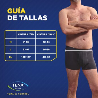 * Comparación del calzoncillo protector TENA Men (talla L) con el uso de un producto desechable TENA (1,5 unidades/día) con ropa interior normal durante 100 días. Evaluación del ciclo de vida llevada a cabo por Essity y una entidad externa verificada. La evaluación incluye los lavados. Más información en www.tena.es.